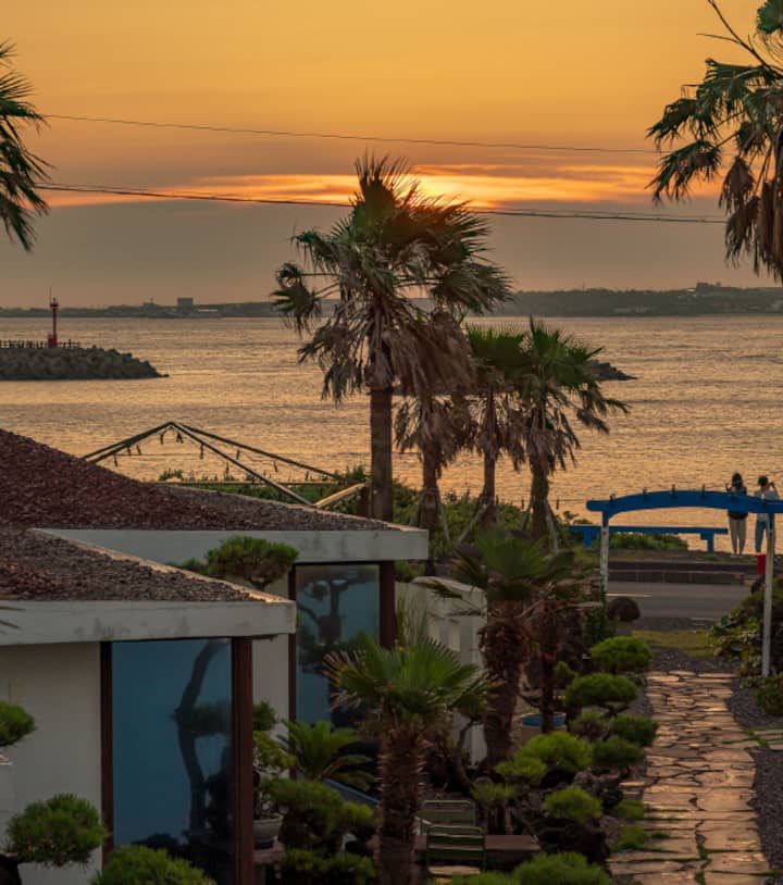 Découvrez Bali à Jeju, une pension spa exotique sur la route côtière de Jongdal-ri. Il offre les meilleures vues sur l'océan de Jeju, avec Seongsan Ilchulbong, l'île d'Udo et un superbe lever de soleil sur la mer depuis les chambres. Détendez-vous avec un verre de vin dans le bain chaud en plein air sous les étoiles. La propriété compte quatre villas privées et un café exclusif. Son emplacement est idéal pour un accès facile au traversier Udo (5 minutes) et dispose d'un magnifique jardin de palmiers le long du sentier Olle.