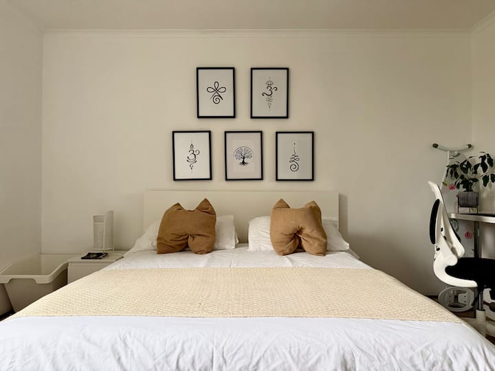 Une chambre privée dans un logement, incluant l'accès aux espaces partagés.