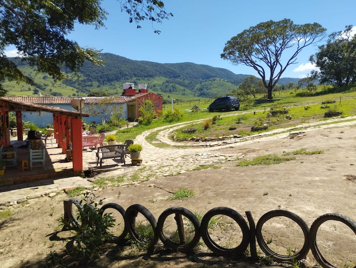 Vivez l'expérience d'accueillir des voyageurs dans le roça magique de São Thomé das Letras ! À seulement 3,5 km de la ville, grand espace avec pelouse, arbres, ombre et eau douce ! Nous avons une petite piscine naturelle, des salles de bain et une douche chaude.