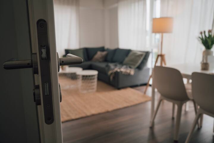 Vous pouvez entrer dans les lieux à l'aide d'une serrure à digicode.