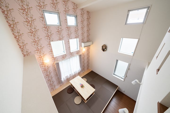 C'est une salle de design peu profonde.Le type Maisonette, haut plafond, a un sentiment d'ouverture.Il y a une entrée au premier étage, les escaliers sont utilisés, et le 2e et 3e étage sont de 50 mètres carrés et peuvent accueillir jusqu'à 4 personnes.
