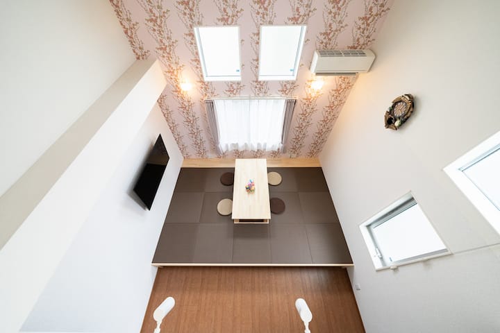 Il est fait pour se sentir japonais, et les tatamis sont dispersés, et c'est un tapis de tatami.Veuillez vous allonger, bébés, et profiter d'un espace libre.