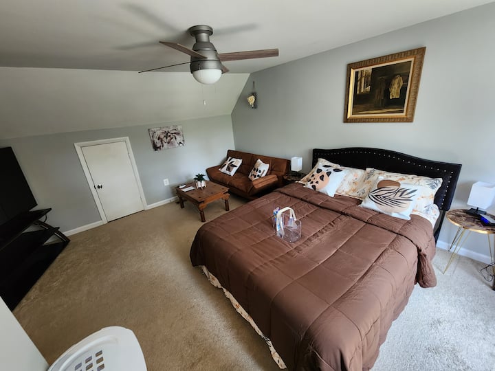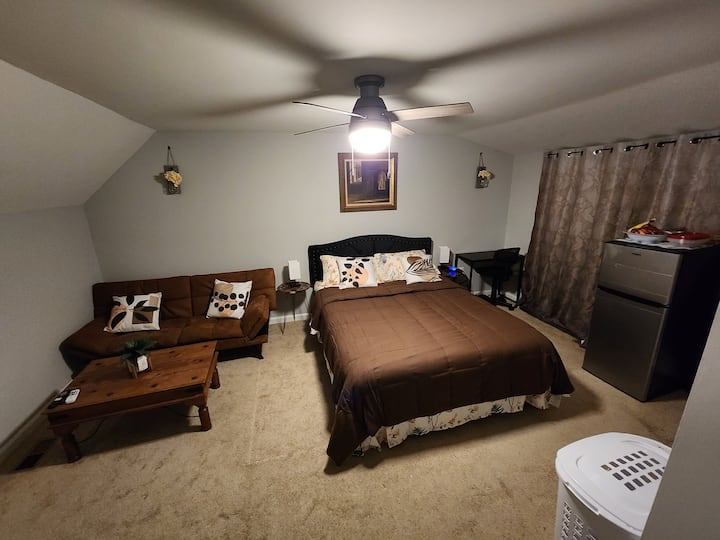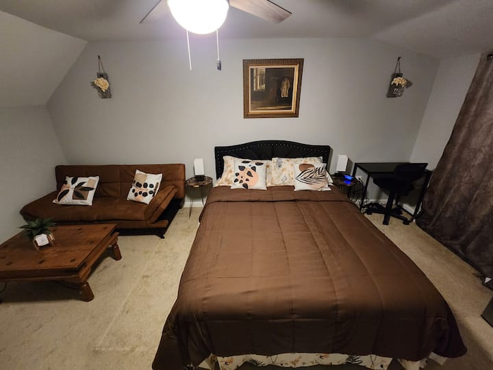Une chambre privée dans un logement, incluant l'accès aux espaces partagés.