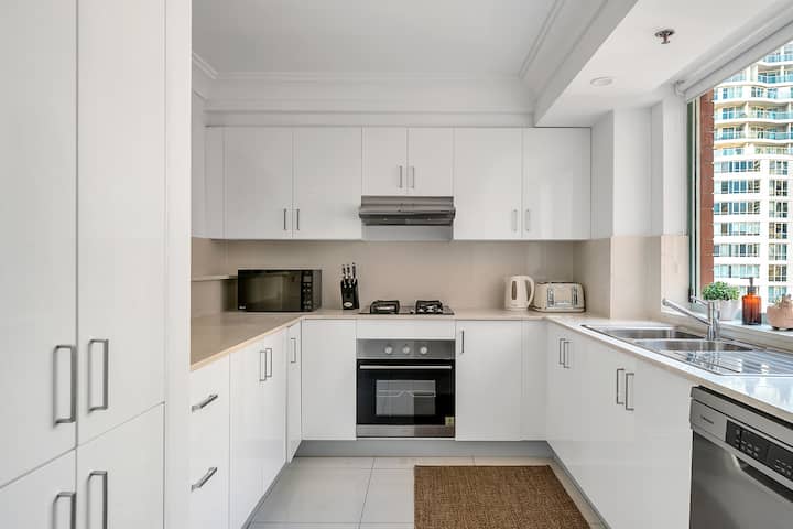 Cet appartement à plusieurs niveaux a tout ce dont vous aurez besoin pour votre prochaine aventure à Sydney. Le salon dispose de deux salons sur lesquels s'étendre sous la climatisation, d'une télévision HD et de portes coulissantes ouvrant sur le balcon couvert.