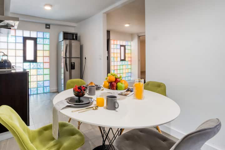 Nous aimons être des hôtes et notre objectif principal est que chaque séjour soit spécial. Nous sommes spécialisés dans le service client ; notre emplacement est unique et notre propriété est décorée avec les normes de qualité les plus élevées. Nous voulons que vous vous sentiez les bienvenus et chez vous !