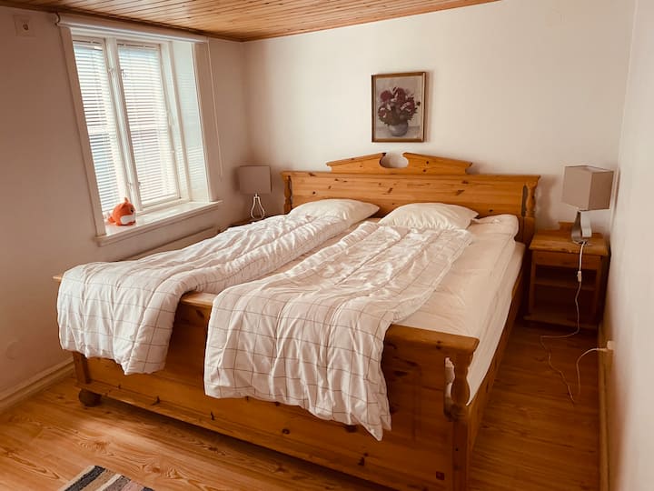 Lidköping centre. Maison privée. Chambre avec lit double