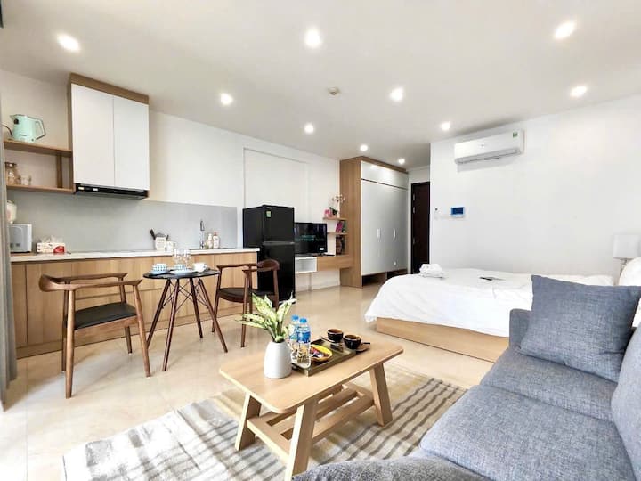 - L'appartement est privé avec toutes les commodités, y compris un lit queen size, une salle de bain privée, un climatiseur, une télévision Internet, une connexion Wi-Fi gratuite, un réfrigérateur, des articles de toilette, un sèche-cheveux, un peigne, une brosse à dents, du savon pour les mains, un fer à repasser, etc.