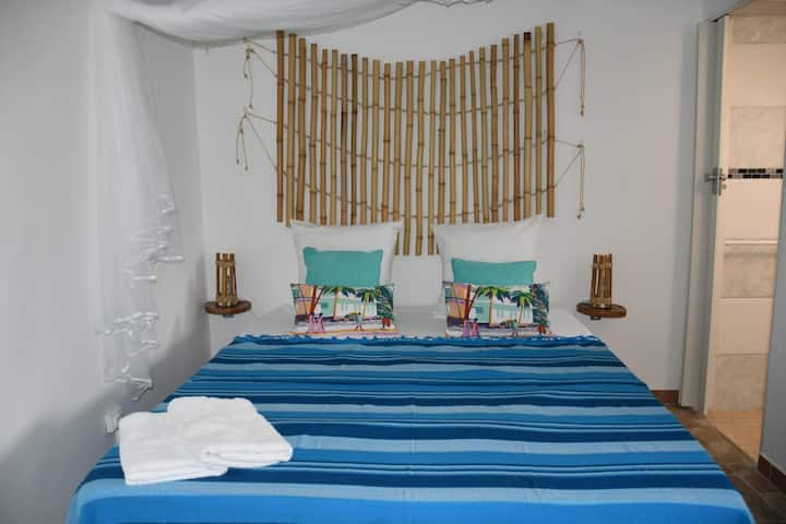 Le soleil commence à percer, allez en extérieur à deux pas de votre terrasse. Apaisez vous à l’ombre des feuilles de cocotiers et des bambous, sous l’abri de jardin à quelques pas de votre logement.