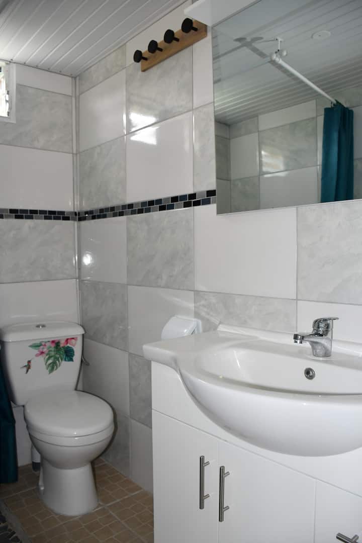 Au Logis COLIBRI reposez-vous dans une chambre équipée d’un lit king size 160 x 200 cm. Prélassez-vous au salon devant la télé ou avec un bon livre. Les fenêtres sont équipées de moustiquaires pour votre tranquillité. L’ensemble est rattaché à une salle d'eau attenante équipée. Concoctez face à la nature, des plats créoles dans sa cuisine aménagée et équipée. Le logis est équipé d'un appareil Nescafé Dolce Gusto. Dégustez sous la terrasse spacieuse, vos plats culinaires. Vous disposez d'une cloison de discrétion en bois. Une expérience unique, loin de votre quotidien, où chaque détail a été pensé pour votre détente.