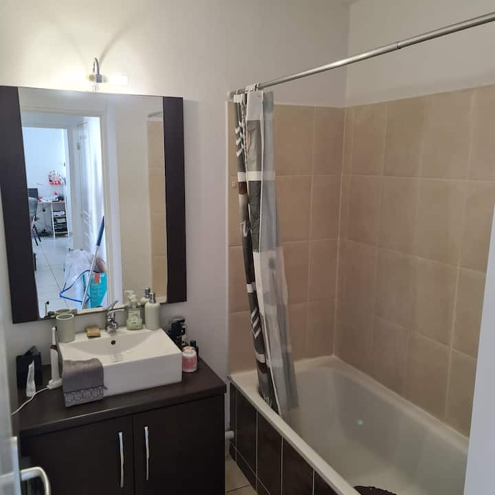 Une chambre privée dans un logement, incluant l'accès aux espaces partagés.