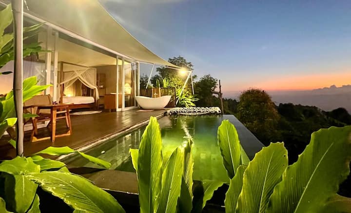 Tente de luxe 1 avec piscine et vue sur le coucher du soleil