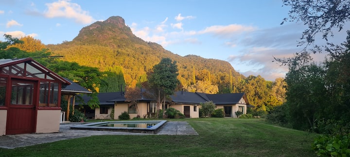 L'extérieur de la propriété est tout aussi impressionnant : les jardins et le parc de la propriété sont un endroit idéal pour se détendre, se promener ou explorer. La moitié du terrain est constituée d'une forêt indigène de boldos centenaires, de myrtes, de chênes et d'autres espèces, tandis que l'autre moitié correspond à un jardin exquis de style français, avec des camélias, des rhododendrons, des liquidambars et des magnolias qui se distinguent tout au long de l'année.