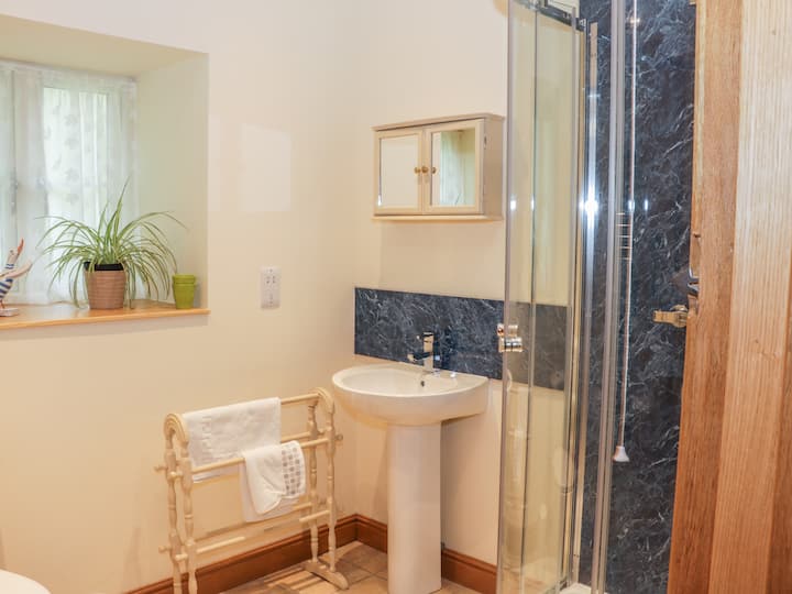 The Old Mill est un superbe moulin en pierre du XVIIIe siècle, à côté d'une ferme d'élevage en activité, juste à l'extérieur du petit hameau de Dolau et à huit miles de Llandrindod Wells. Sur trois étages. Quatre chambres : 1 lit king size au deuxième étage, 1 lit double au deuxième étage, 1 deuxième étage double 3/4, premier étage 1 lits jumeaux. Salle de bain au deuxième étage avec baignoire, douche séparée, lavabo et WC. Salon au premier étage. Salle d'eau au rez-de-chaussée avec douche, lavabo et WC. Salon ouvert au rez-de-chaussée avec cuisine, coin repas et coin salon. Utilitaire avec lave vaisselle et sèche linge Espace chien avec cage et chauffage au sol. Salon au premier étage (7 places). À l'extérieur, il y a un parking hors route, une borne de recharge pour voiture électrique et une terrasse couverte avant avec jacuzzi, mobilier et barbecue, ainsi qu'un jardin gazonné avant et latéral. The Old Mill est un endroit fabuleux pour passer des vacances au Pays de Galles, à toute période de l'année. Remarque : il y a cinq marches en pierre entre le parking et la porte d'entrée. Remarque : la propriété est adjacente à une ferme en activité, qui est clôturée et séparée, veuillez vous assurer que les chiens sont tenus en laisse à l'extérieur. Remarque : en raison du ruisseau dans le jardin et des balcons Juliette du salon du premier étage, des précautions doivent être prises et les enfants doivent être surveillés à tout moment. Remarque : cette propriété peut ne pas convenir aux personnes à mobilité réduite et n'est que partiellement au rez-de-chaussée.