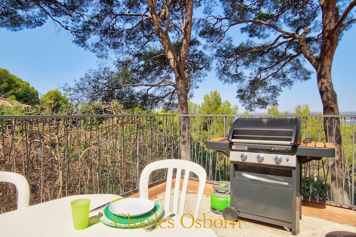 La maison est nichée sur le Mont-Saint-Clair dans une impasse très calme et sans passage. Le parking peut accueillir deux voitures facilement et les stationnements sont gratuits dans la rue.