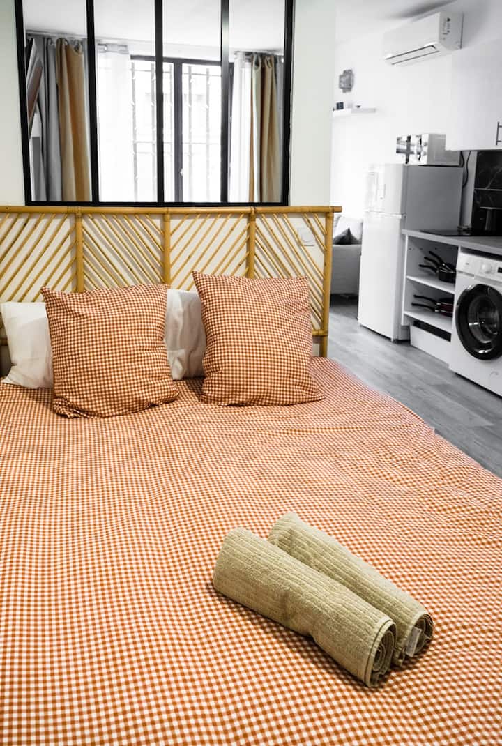 Inspiré par les vagues et le sable chaud, notre appartement mêle avec harmonie des touches naturelles et une décoration épurée pour une atmosphère douce et apaisante.