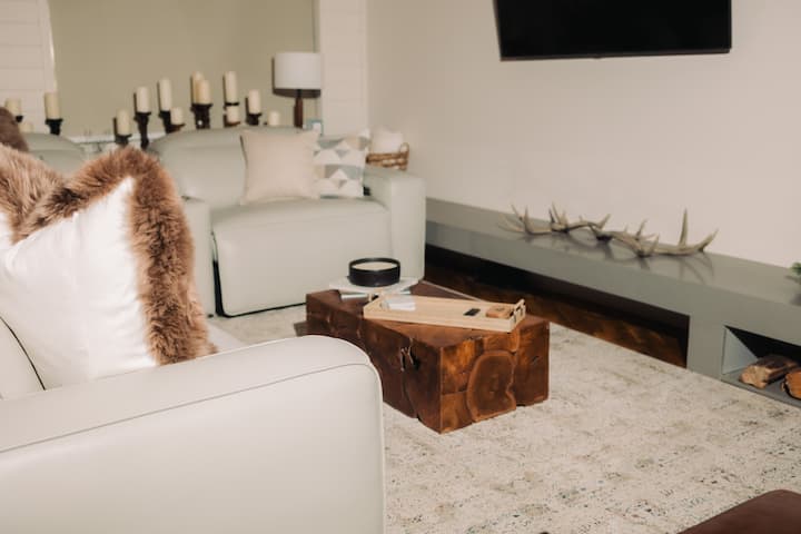 Cette luxueuse retraite de montagne est idéale pour les grands groupes de familles ou d'amis, offrant des équipements complets pour un confort et des loisirs ultimes. Vous aurez pleinement accès à tous les espaces de la maison, à l'exception de l'espace de rangement sous le chalet, du hangar de rangement extérieur et du placard de rangement dans la salle de bain principale. Rassurez-vous, vous ne manquerez d'aucune caractéristique ni confort essentiel pendant votre séjour.