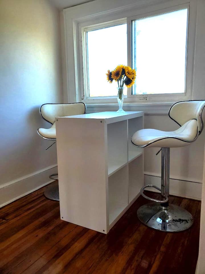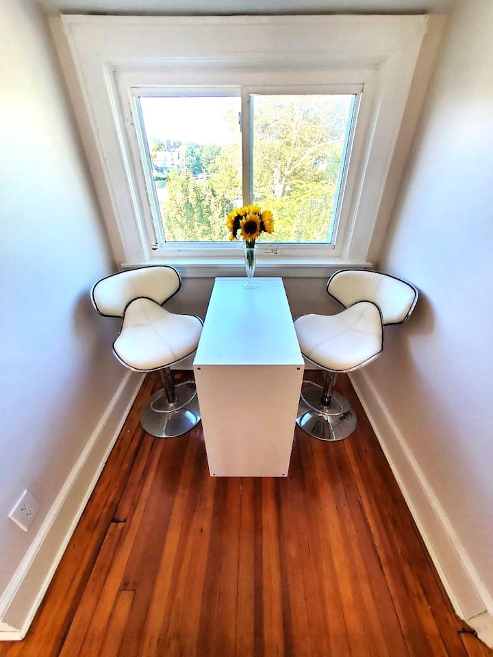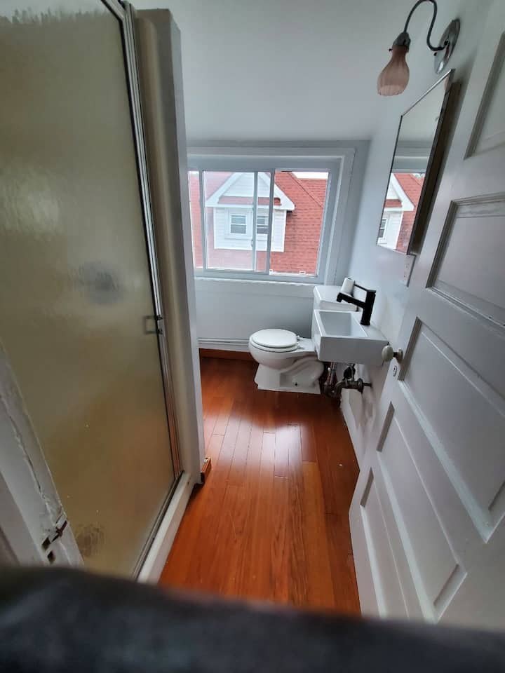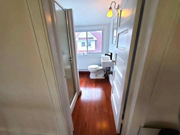 Remarque : cette annonce s'applique à l'ensemble de l'étage, y compris (2) chambres dotées d'une salle de bains privée, d'un couloir, d'une kitchenette et d'un coin repas. La kitchenette comprend un mini-réfrigérateur et une plaque chauffante (pas d'évier, vous devez utiliser la salle de bain pour faire la vaisselle) . L'entrée principale au 1er étage sera partagée avec les invités séjournant au 3ème étage.