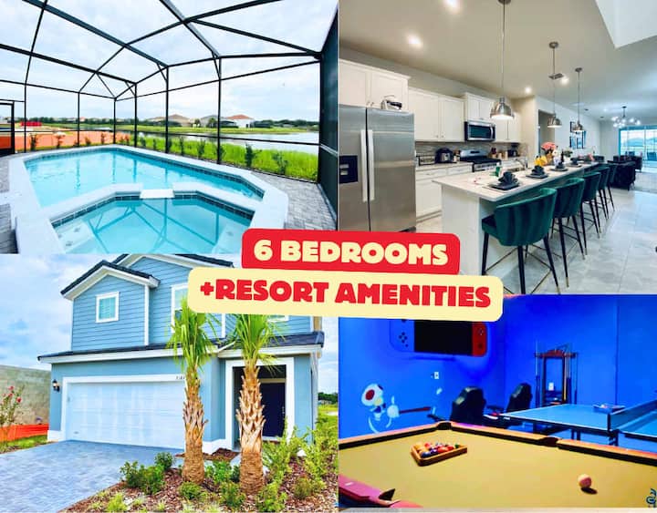 Des suites à thème inspirées de Frozen et Harry Potter enchanteront les fans, tandis que la propriété comprend également une salle de jeux dans un garage climatisé, une piscine privée et un spa, tous situés dans le pittoresque complexe hôtelier Solterra, à seulement 15 minutes de Walt Disney World.