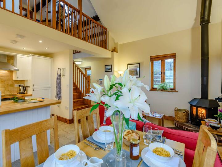 Magnifiquement présenté avec un style traditionnel, ce magasin de céréales converti dispose de hauts plafonds et d'éléments de design originaux qui se réunissent pour créer un hébergement vraiment joyeux. L'espace de vie ouvert permet aux quatre voyageurs de passer du temps de qualité ensemble pour préparer des repas, dîner ou se prélasser sur des canapés confortables. Jetez une bûche sur le poêle à bois pour rendre cette pièce chaleureuse et accueillante. Ceux qui préfèrent une touche de paix et de tranquillité peuvent se retirer dans la lecture au sol de la mezzanine au-dessus, tandis que tout le monde trouvera un espace pour se détendre sur le patio et la pelouse généreuse. À la tombée de la nuit, nous sommes sûrs que vous terminerez la journée pour votre lit. Reposez les muscles endoloris dans l'une des trois chambres accueillantes au sol ou aux premiers étages.