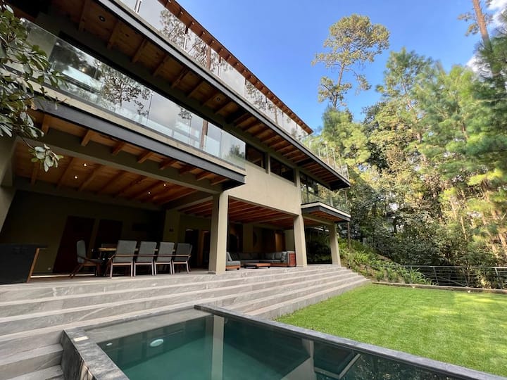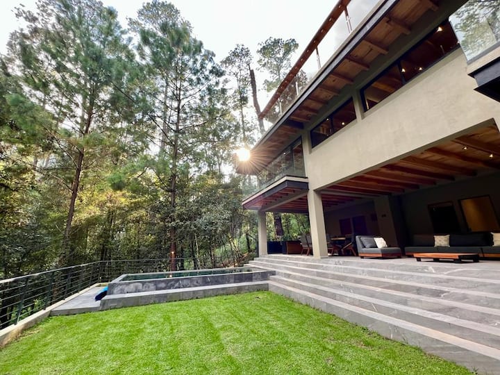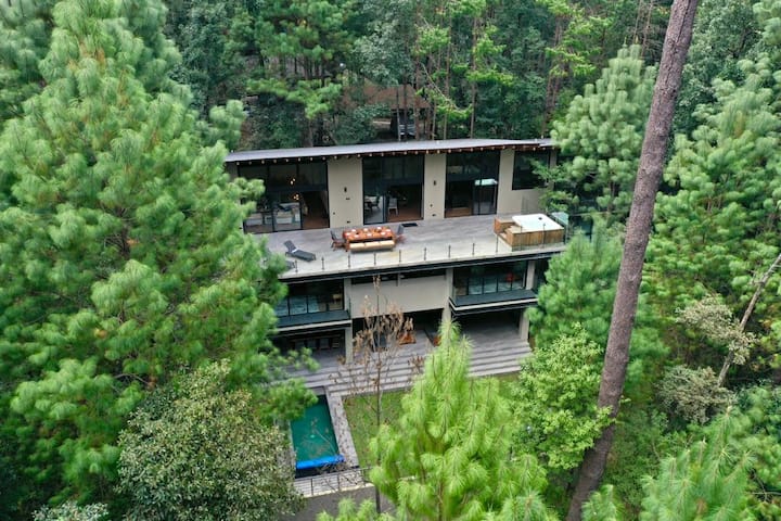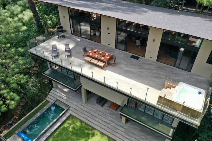 Maison cachée dans la forêt avec piscine et jacuzzi