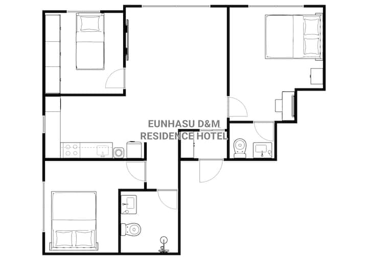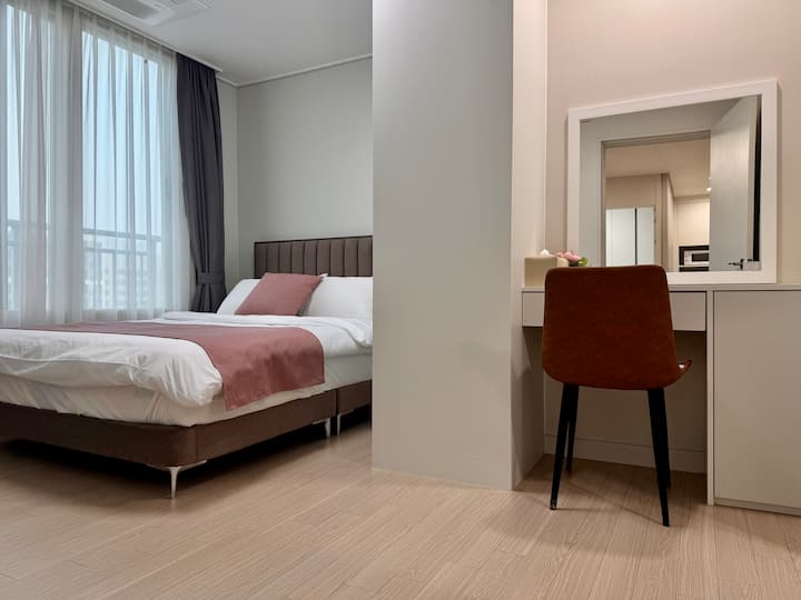 [Eunhasu D&M] [Yeongrong Hana] Haut étage/3 minutes de la gare de Daejeon Yooseong Oncheon/Neuf/Literie d'hôtel premium/Chambre 3 (Tous les lits)