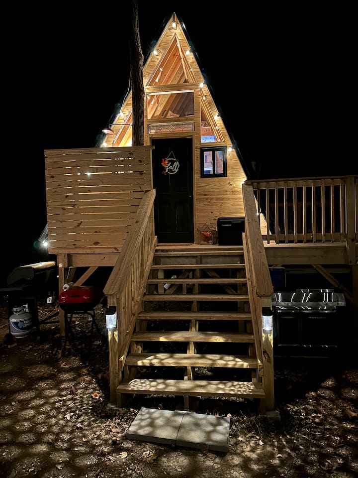 chalet triangulaire hors réseau en bordure d'un ruisseau