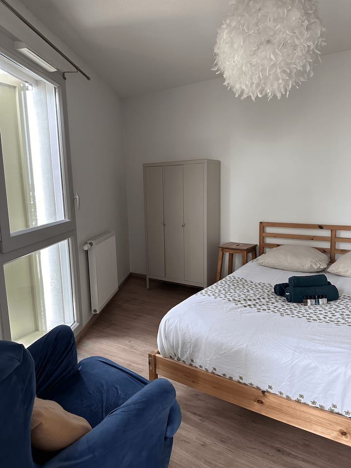 Cet appartement spacieux de 48m2, au calme et très confortable, à proximité immédiate de Lyon et ses nombreuses activités, est le logement parfait pour un couple, deux ami(e)s ou un voyageur seul !