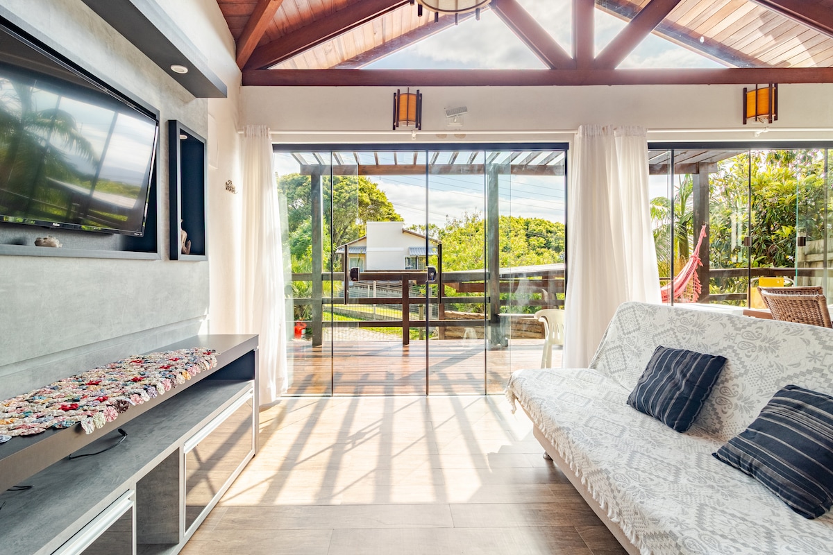 Notre espace est conçu pour nos clients. Nous disposons d'un espace de 1500 m², un endroit sûr, une maison complète et équipée, une table de billard, une piscine chauffée, un jacuzzi, un accès à un lagon privé, une planche de standup paddle, un kayak, etc. Notre emplacement est privilégié pour ses beautés naturelles, nous sommes situés à environ 2 km de Praia do Rosa, mais en plus de cette belle plage, il y a d'autres belles plages également dans la région, comme Praia do Ouvidor, Praia da Barra de Ibiraquera, Praia do Luz, Etc…