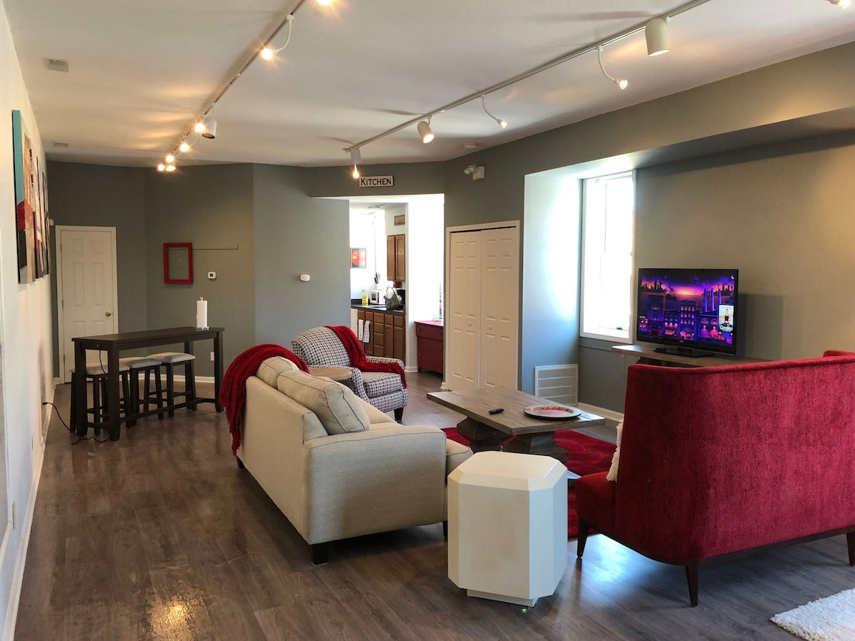 À 3 min à pied de Great Food and Craft Cocktails À 10 min à pied du Huntington Center À 13 min à pied du front de rivière et des hauteurs Les suites studio charmantes et somptueuses au cœur du centre-ville de Tolède offrent une expérience unique avec la commodité d'un enregistrement et d'un départ «sans contact». Entièrement meublé avec lit king-size, télévision intelligente, canapé, poste de travail et petits appareils de cuisine. Comprend une salle de bain complète avec douche carrelée et wifi haut débit. Parfait pour les voyageurs d'affaires ou les visiteurs du week-end.