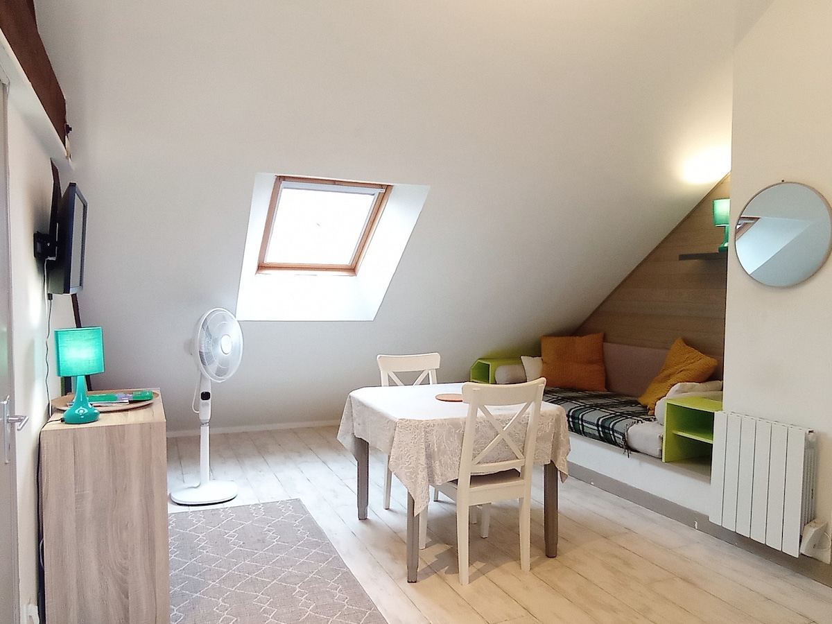Profitez de cette location meublée classée de 26 m2 avec son entrée indépendante et sa facilité de stationnement. Idéalement situé pour découvrir saint Malo et ses alentours. Ce studio neuf est composé d'une pièce de vie lumineuse, d'une cuisine ouverte avec lave vaisselle, d'un canapé convertible (160x200) et d'une TV. Le coin nuit dispose d'un lit de 160x200 avec accès à la salle d'eau. Animaux non acceptés. Non fumeur. Wifi Logement mitoyen au notre, nous sommes disponible facilement.