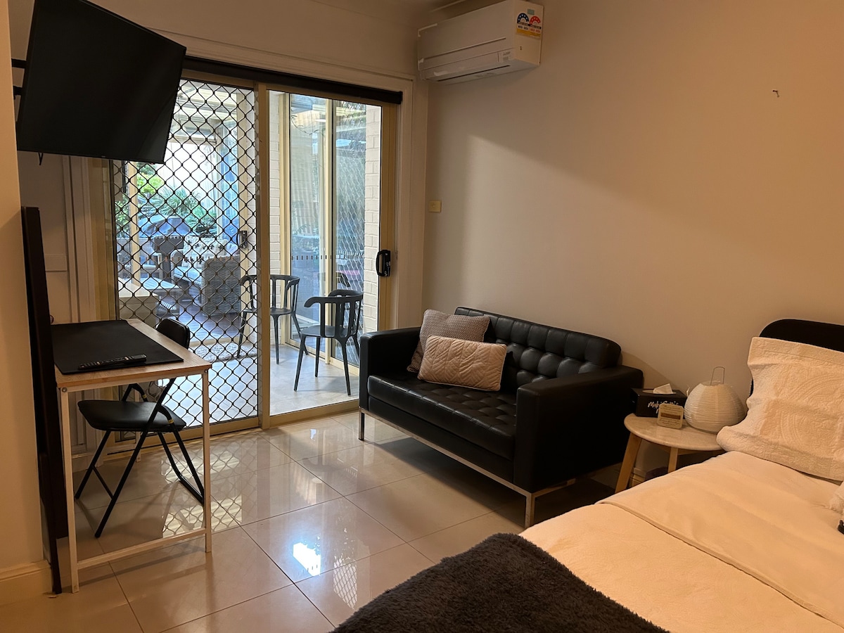 Découvrez la tranquillité dans notre studio élégant à Schofields. Cette retraite confortable est parfaite pour les voyageurs en solo ou les couples à la recherche d'une escapade paisible. Le studio dispose d'équipements modernes, d'un espace de vie confortable avec une atmosphère privée. À quelques minutes en voiture du lycée public Schofields, du Riverstone High School, du Norwest Christian College et de Woolworths. À 7 minutes en voiture de la gare de Tallawong et de la gare de Schofields. Nous nous réjouissons de votre séjour !