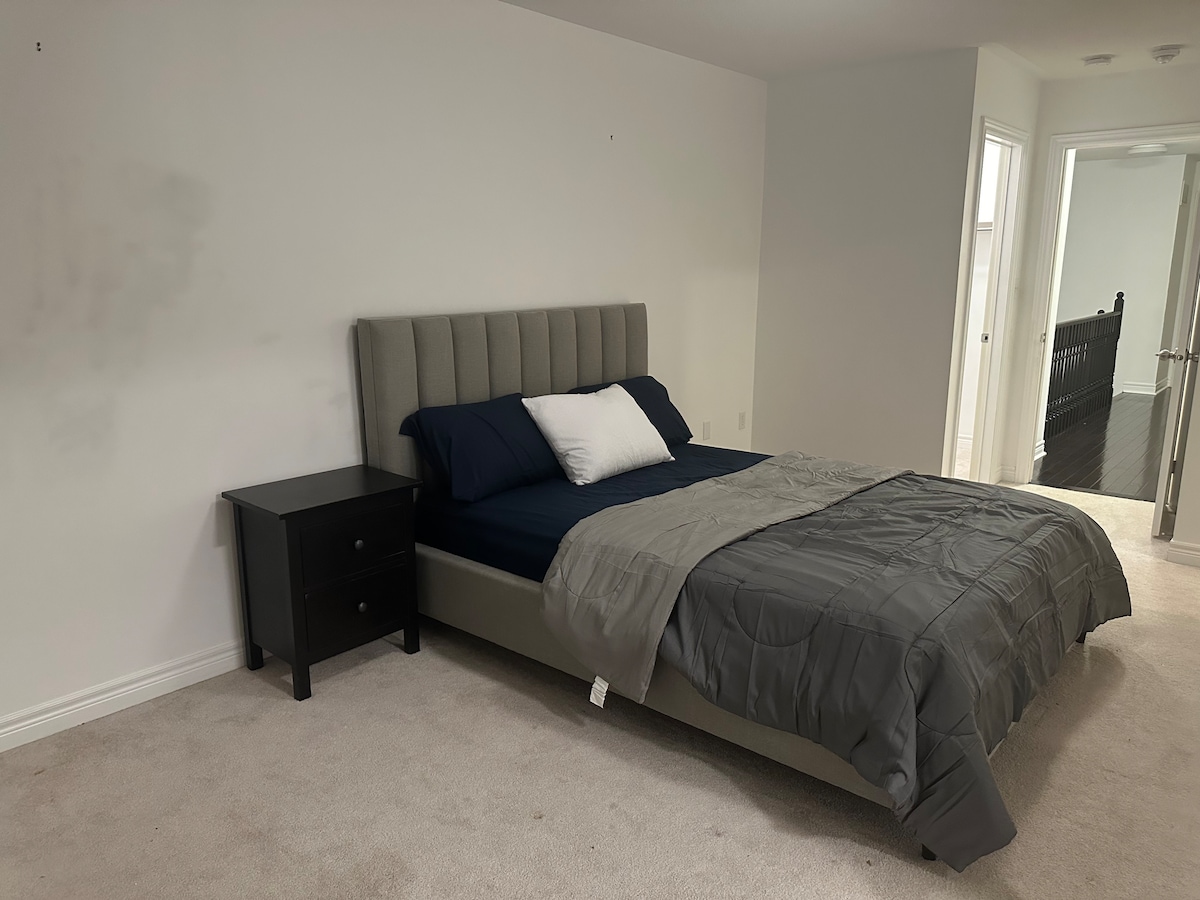 Bienvenue dans notre appartement confortable au sous-sol ! Cet Airbnb moderne est situé dans un quartier résidentiel paisible à 40 min en voiture du centre-ville de Toronto et à une heure des chutes du Niagara. L'espace bien éclairé dispose d'un lit Queen Size confortable, de nombreux rangements dans le placard spacieux et d'un intérieur magnifiquement conçu avec de la lumière naturelle inondant les grandes fenêtres. Remarque : nous avons 2 matelas pliants simples disponibles à placer sur le sol dans le séjour. Draps et oreillers supplémentaires fournis.