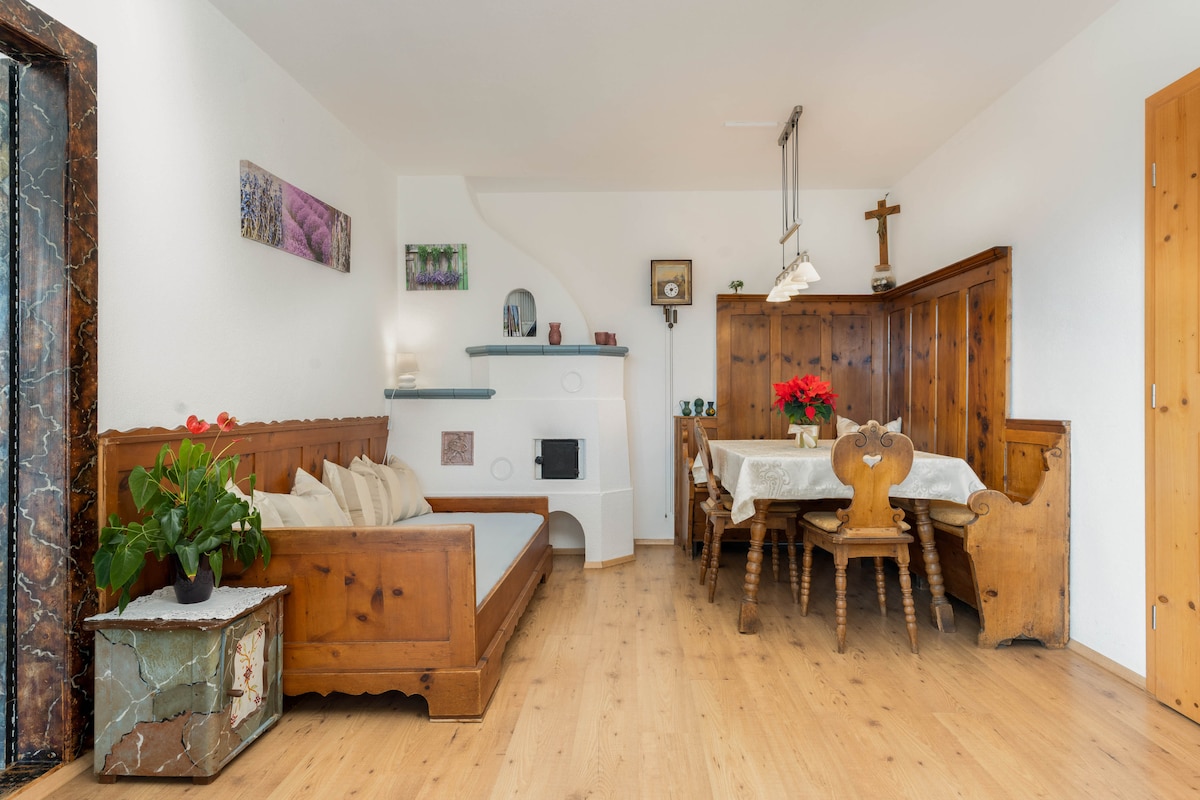 Situated on the outskirts of a Tyrolian mountain village this place offers you a wonderful-broad view. The apartment, lovingly combining tradition and modernity will let you calm down and recharge your batteries instantly. A closeby cable car enables you to all kinds of mountain sports in summer and winter. Yet- even those, who just "stay and relax" will feel at home. WIFI, TV, BT-boxes, parking space are available free of charge; for the Sauna we take a small feey. Kitchen is well equipped .