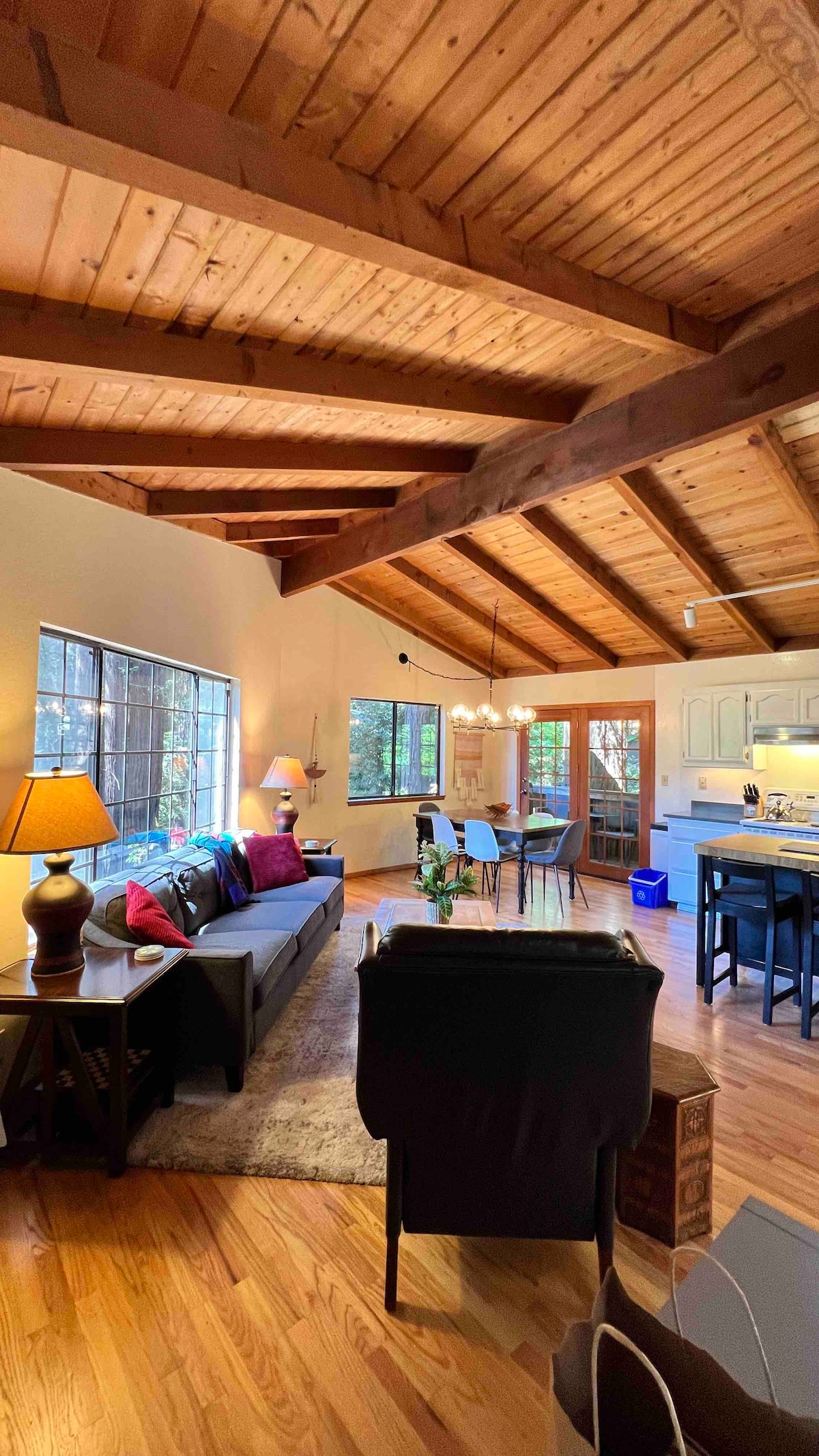 Nichée parmi des séquoias majestueux, notre maison charmante et élégante offre un refuge unique pour les voyageurs à la recherche d'une escapade tranquille en pleine nature. Entrez pour découvrir un espace de vie soigneusement conçu, orné d'accents de bois naturel, d'un décor élégant et d'une lumière naturelle abondante qui traverse les fenêtres. Que vous recherchiez une escapade romantique, des vacances en famille ou une retraite de week-end, notre maison offre le mélange parfait de confort, de commodité et de beauté naturelle. À 4 min du centre-ville.