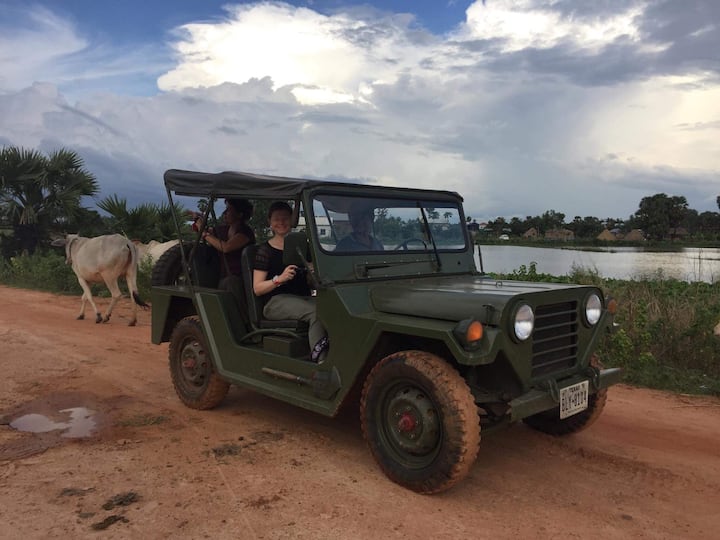 La campagne cambodgienne authentique en Jeep vintage