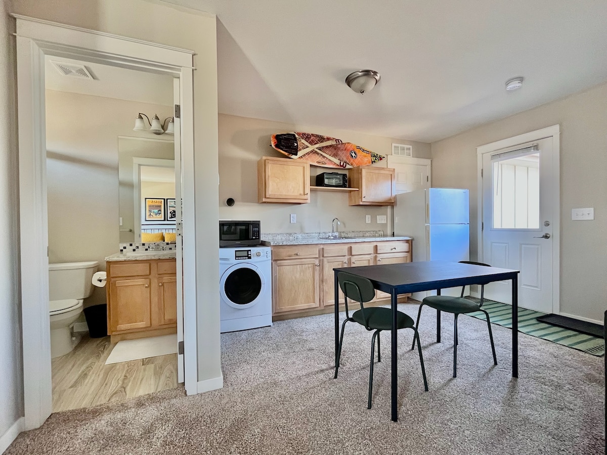 Profitez de cette maison d'hôtes élégante avec une entrée privée à proximité de Olde Town Arvada ! Studio spacieux avec lit King Size, canapé-futon, cuisine avec plaque de cuisson, télévision connectée et salle de bain complète. Accès facile à l'I-70 pour se rendre au centre-ville de Denver et dans les montagnes. À 5 minutes en voiture ou 30 minutes à pied d'Olde Town Arvada avec des tonnes de restaurants, bars et boutiques. La maison d'hôtes est un bâtiment séparé derrière notre maison principale. Elle est attachée à notre garage.