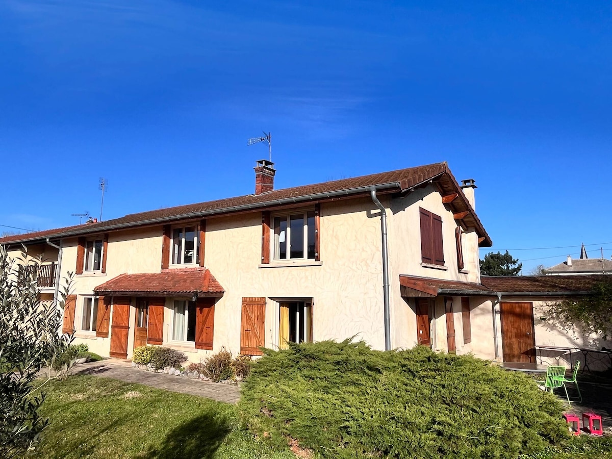Maison familiale des années 1870, typique de la région.<br><br>Située à Blyes, cette maison indépendante et confortable est parfaite pour accueillir jusqu’à 3 personnes (3 chambres) en mission professionnelle, ou 5 en tourisme, offrant un cadre calme et fonctionnel proche des zones industrielles de l’Ain.<br><br>Pour ce qui est de la Tv, il n'y a pas de décodeur. <br>Il convient de brancher un appareil en Hdmi. <br><br> Aménagements adaptés aux professionnels :<br>