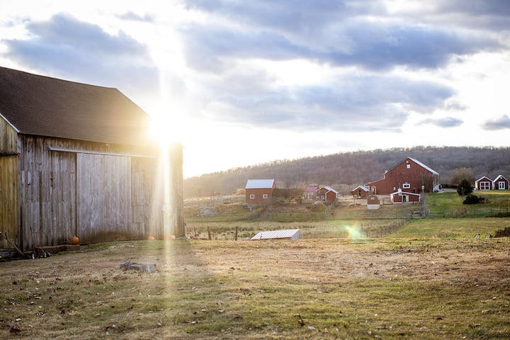 Rencontrez des animaux de ferme au coucher du soleil
