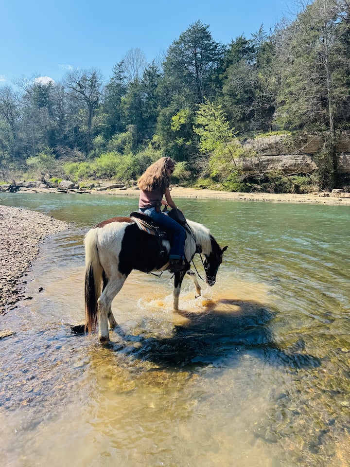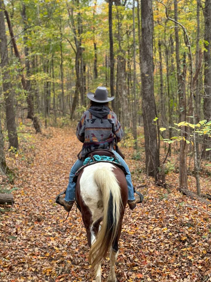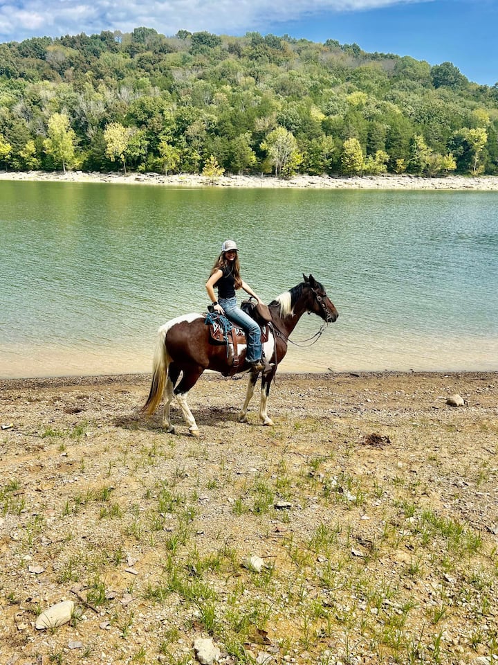 Promenade privée au bord de la rivière à dos d'un cheval de marche du Tennessee