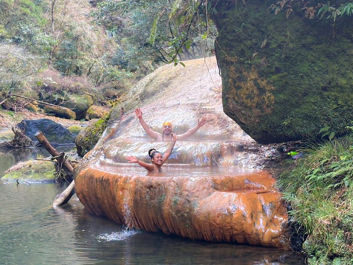 Source thermale sauvage privée exclusive dans la forêt de bambous