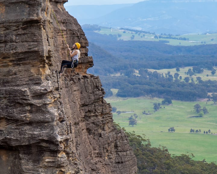 Aventure de descente en rappel spectaculaire dans les montagnes bleues