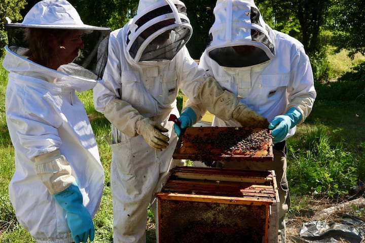 Avec l'apiculteur, découvrez ruches et abeilles