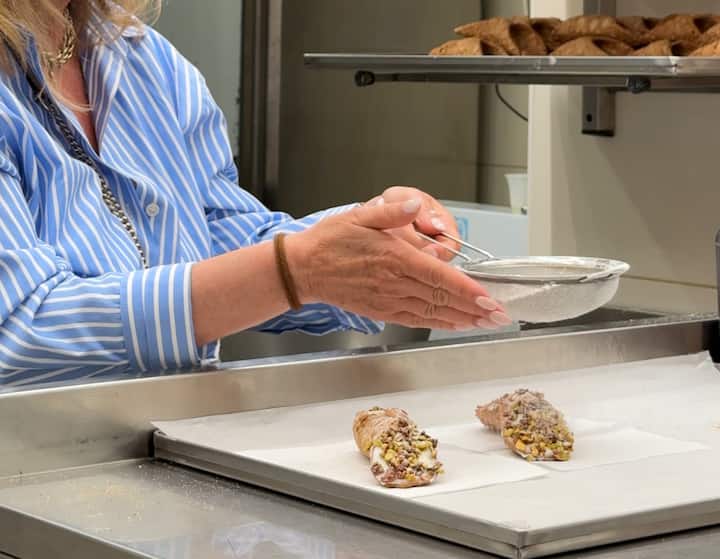 Préparation de pizzas et cannoli siciliens au bord de la mer
