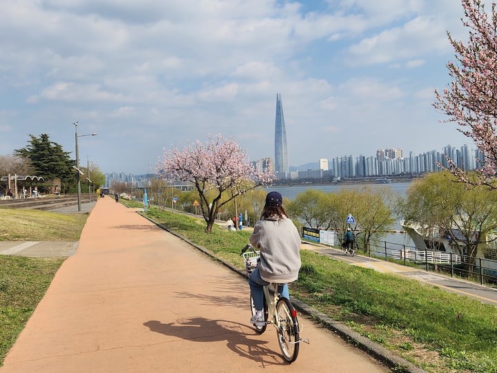 Visite matinale à vélo le long de la rivière Han avec un habitant