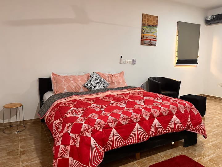1 chambre avec climatisation, ventilateur, micro-ondes et réfrigérateur