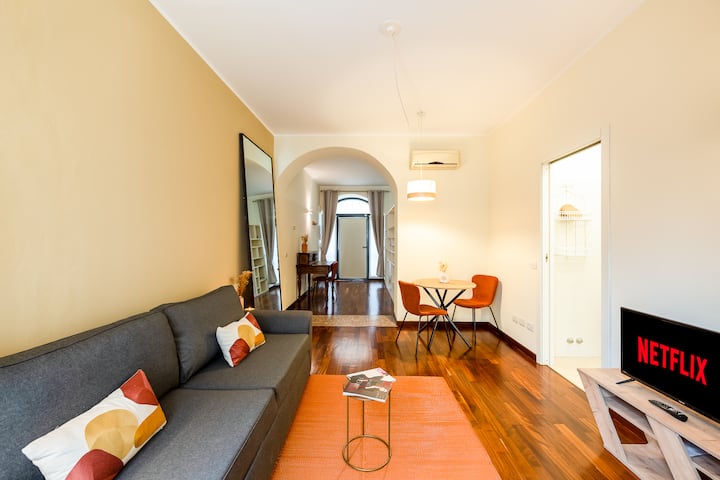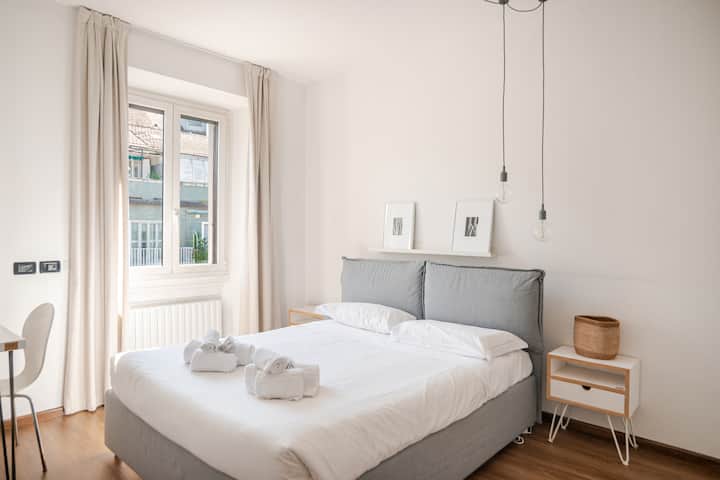 Chambre et salle de bains dans une maison de charme, centre de Milan