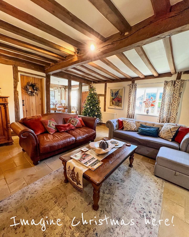 Chalet de Noël avec feu de bois et panier de bienvenue