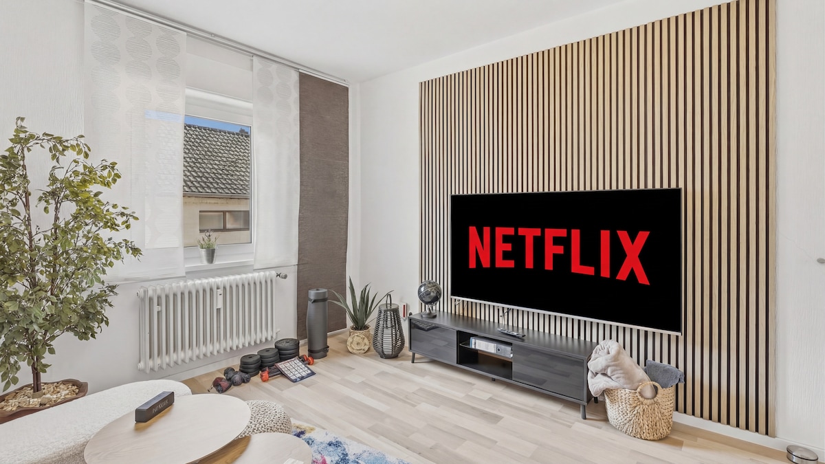 Stufenfreie Wohnung im Erdgeschoss, schön, hell, gemütlich und freundlich eingerichtete Wohnung mit Komfort und Komplettausstattung. 4 DTV 🌟Sterne, Neubau, auch kühl in heißen Sommertagen, bevorzugte Wohngehend in Saarlouis, 75qm, Radunterbringung/Home Office ,Terrasse mit schönem Blick in den Garten. entspannter sehr ruhiger Schlaf, großzügiger Wohnraum mit offener Küche. Separater Tisch mit Stühlen, modernes Bad mit Fenster. Sie ist sehr citynah, 800m bis Zentrum. Hauptbahnhof in der Nähe.