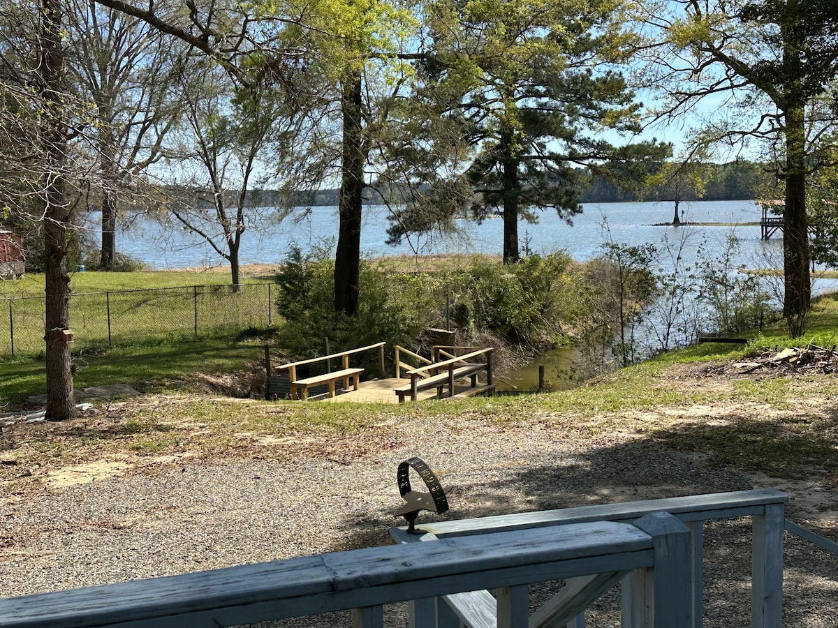 Cette cabane en cadre A unique est nichée au bord du lac, dans la partie nord de Toledo Bend, entourée d'arbres adultes qui créent un paysage à couper le souffle. Depuis le patio, vous pouvez regarder les aigles atterrir et déguster de magnifiques couchers de soleil. La cabane a été rénovée avec une nouvelle climatisation, un nouveau revêtement de sol et des meubles. Venez vous détendre dans cette cabane calme et propre avec deux chambres, une salle de bain et un loft donnant sur une belle vue sur le lac de Tolède. En raison de la nature environnante, Internet est la vitesse moyenne.