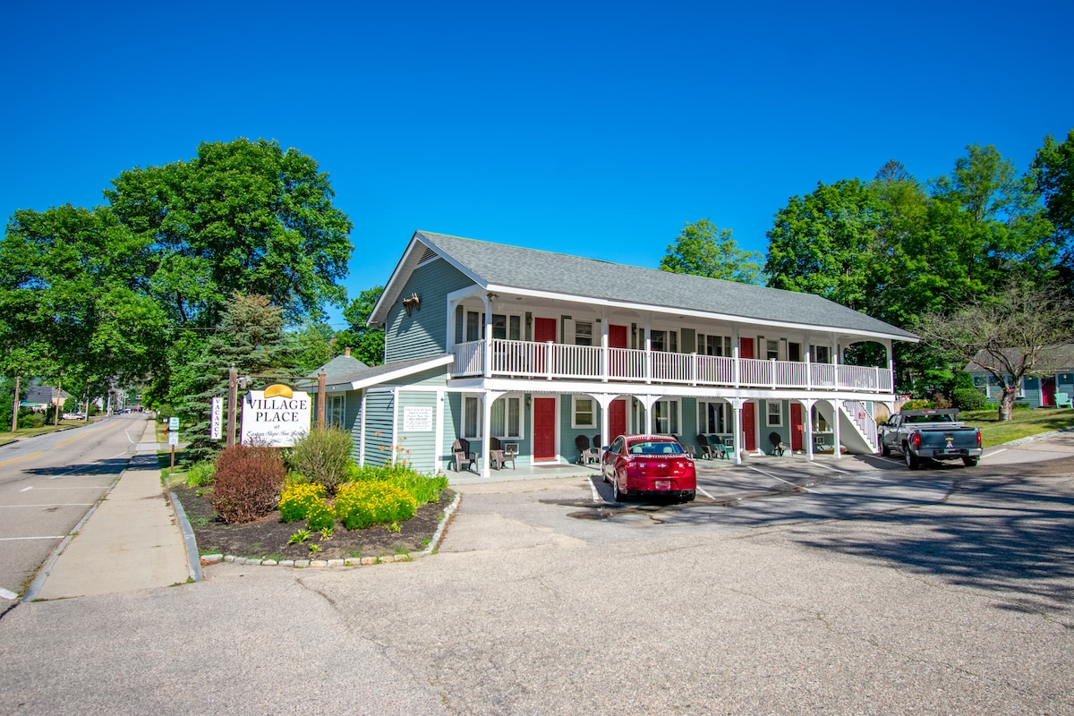Bienvenue au Village Place de l'Eastern Slope Inn ! Doit avoir 21 ans pour l'arrivée, 40 $ d' autorisation prise à l'arrivée (pas de frais réels), pas de chats. SI VOTRE CHIEN VOUS ACCOMPAGNE (pas de chats), veuillez nous prévenir à l'avance, prévoir des frais pour animaux de 25 $/nuit pour les 4 premières nuits, un carnet de vaccination antirabique et une cage si vous devez le laisser. Un chien est autorisé par chambre, pas de chats, merci de votre compréhension. À mi-chemin entre Main Street et Cranmore Mountain, vous serez à distance de marche de tout !